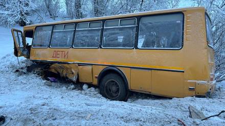 Рядом с городом Северодвинском в Архангельской области детский автобус столкнулся с автомобилем, после чего вылетел в овраг. Об этом в четверг, 15 января, сообщили в пресс-службе прокуратуры Архангельской области и Ненецкого автономного округа.