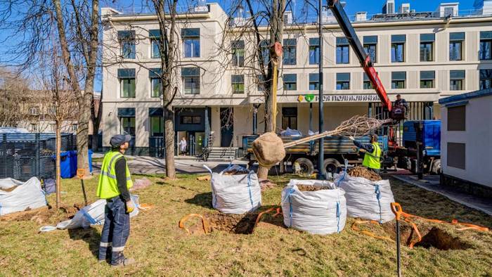 Возле реконструированных столичных поликлиник высадили еще около 400 деревьев