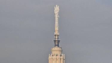 Шпиль главного здания МГУ покрылся льдом из-за морозов