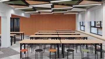 В рекреационных зонах установят мягкую мебель, подоконники с подушками и яркие шкафчики для хранения личных вещей, а на этажах появятся питьевые фонтанчики. Вместо традиционных библиотек предусмотрено создание медиатек, а актовые залы заменят светлые многофункциональные атриумы.