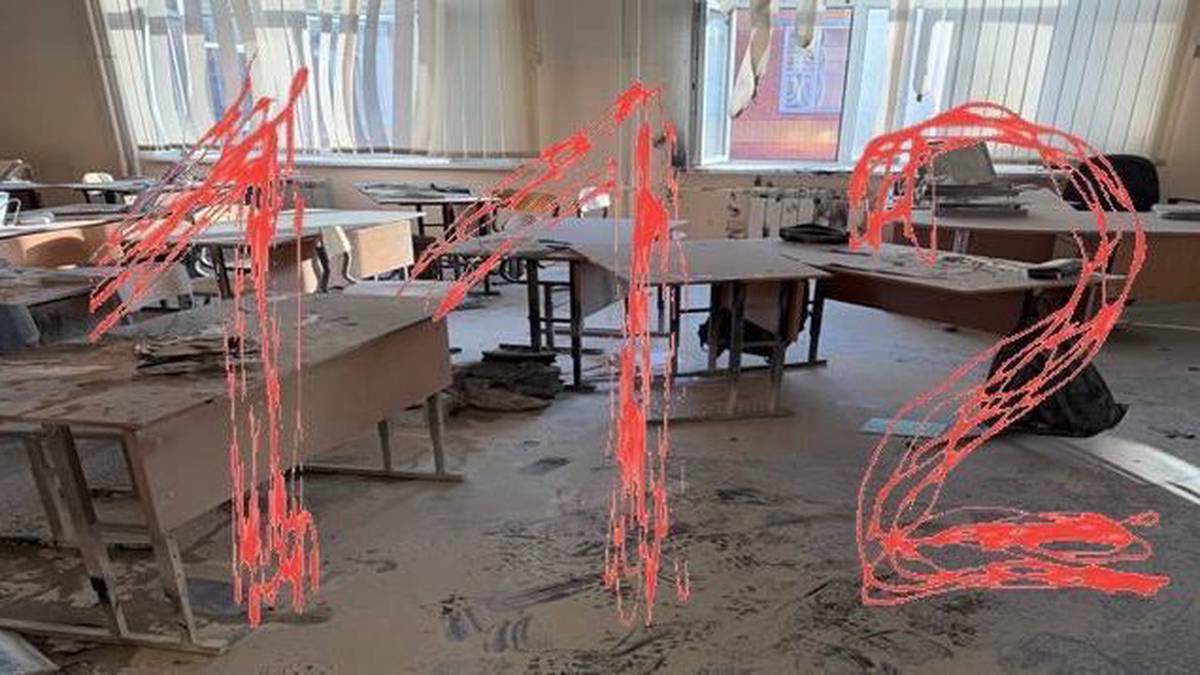 На фотографиях видны следы от огня в туалете школы, а также в нескольких кабинетах учебного заведения. На данный момент официально известно о пяти пострадавших.