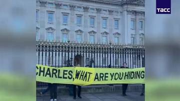 Во время демонстрации активисты развернули плакат с обращением к королю Великобритании Карлу III с вопросом: «Карл, что ты скрываешь?». Кроме того, протестующие прикрепили к решетке ворот дворца ленту желто-черного цвета с надписью «Место преступления, не входите».