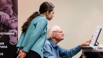 Участница Молодежной программы Транссибирского арт-фестиваля Полина Черкасова и заслуженный деятель искусств РФ Сергей Осипенко работают над двумя этюдами-картинами Сергея Рахманинова, Опус 39 / Фото: Александр Иванов