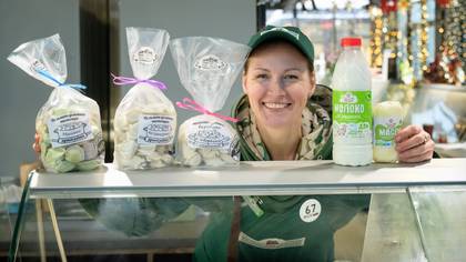 Агрегатор производителей, участница ярмарки Марина Голубева представляет продукцию из Смоленской области / Фото: Дмитрий Дубинский / Вечерняя Москва