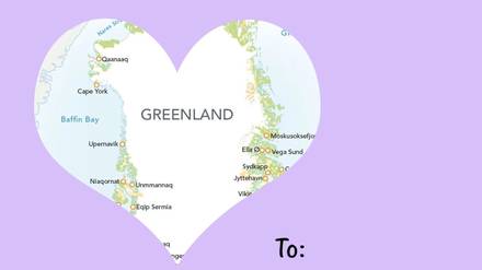 На первом поздравлении изображен остров, который лидер США Дональд Трамп хочет присоединить к своей стране.