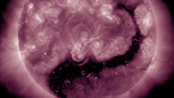 — Красивая корональная дыра на Солнце. Дракон... При определенном воображении можно даже разглядеть выдыхаемое пламя, — говорится в Telegram-канале лаборатории.