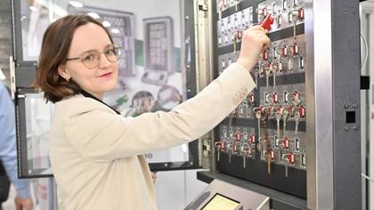 — Вы прикладываете карточку, и аппарат выдает вам только те ключи, которые вы, согласно информации в карточке, имеете право брать. Остальные ключи заблокированы, — рассказывает инженер-технолог Анна Московец. — Нужные ключи подсвечиваются, вернуть их можно в любую ячейку. Сохраняется история — можно посмотреть, кто и когда взял какой ключ.