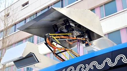 Для тестирования на крыше электробуса поколения А5 заменили токозарядное устройство на контактные рельсы. Переход на пантографы инвертированного типа упростит процесс. На новых электробусах будет отсутствовать необходимость установки сложных устройств для приема заряда.