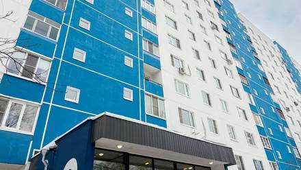 На первом этапе специалисты выполнили подготовительные работы: фасад промыли, исправили геометрию панелей и отбили бухтящую плитку. На следующем этапе нанесли клеевые составы с армирующей сеткой, декоративные слои и последним — окрасочный слой. Пристальное внимание уделили межпанельным швам. Их расчистили и заново заполнили современным материалом — это обеспечит дополнительную защиту дома от сырости и сквозняков. По окончании основного объема работ в доме установили новые окна и витражные блоки в местах общего пользования. Привели в порядок цоколь и лоджии, отремонтировали входные группы и выполнили устройство новой отмостки.