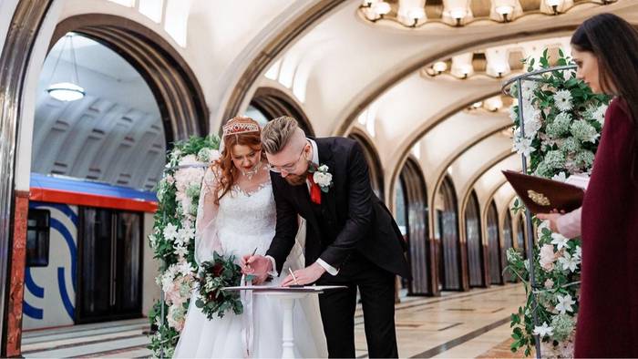 Первые в 2026 году церемонии бракосочетания провели на станции метро «Маяковская»
