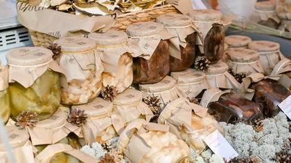 В ярмарочном павильоне на Отрадной улице расположено гастрономическое посольство Смоленской области. Здесь можно приобрести сыродавленые масла, бочковые огурцы и капусту, медовую пастилу, сбитень и яблочный сок прямого отжима.