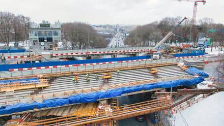 Реконструкцию Воробьевского путепровода планируют завершить осенью. Объект расположен на пересечении проспекта Вернадского с улицей Косыгина.