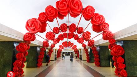 Станцию метро «Трубная» украсили более 400 алых роз к 8 Марта