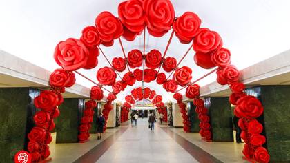Станцию метро «Трубная» украсили более 400 алых роз к 8 Марта
