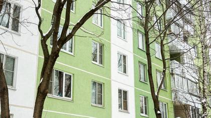 Особое внимание было обращено на выполнение работ по приведению в надлежащий вид портрета дома. Дело в том, что его фасад отделан глазурованной прямоугольной плиткой, которая по сути своей уже неремонтопригодна. В Москве дома с такими фасадами восстанавливают по современной технологии, используя полимерцементные смеси на армирующих сетках. Этот метод хорошо зарекомендовал себя, так как позволяет повысить энергоэффективность здания. Былой облик дома — привычный и неброский, обретает современный яркий стиль. Для удобства жителей работы по обновлению фасада были разбиты на несколько этапов. На первом — мастера промыли открытые поверхности, ликвидировали трещины и отбили бухтящую плитку. На следующем этапе нанесли штукатурно-клеевой состав с армирующей сеткой и положили слой из декоративных составов, после чего фасад окрасили. В завершение произвели расчистку и герметизацию межпанельных швов, заменили двери входных групп, установили новые балконные экраны, отремонтировали откосы и выполнили устройство новой отмостки.