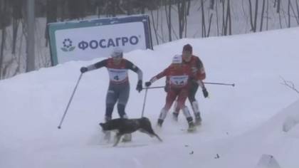 Собака сбила с ног двух лыжниц на чемпионате России