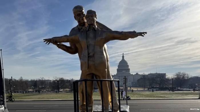 Золотую статую обнимающихся Трампа и Эпштейна установили в Вашингтоне