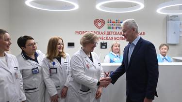 Мэр Москвы Сергей Собянин поздравил медицинский персонал с открытием после ремонта лечебного корпуса Морозовской детской больницы