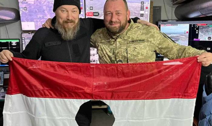Украинский посол в Венгрии Федор Шандор сделал фото с продырявленным венгерским флагом в компании командующего силами беспилотных систем ВСУ Роберта Бровди (в РФ он обвиняется в теракте, жертвами которого стали российские журналисты — прим. «ВМ»).
