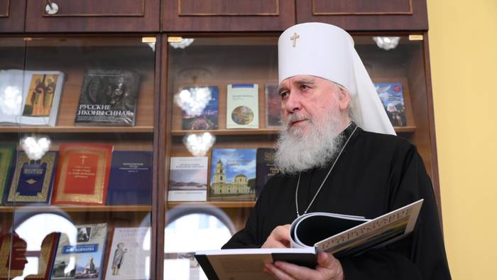 Председатель Издательского совета Русской православной церкви митрополит Калужский и Боровский Климент демонстрирует книгу «Православие в Приморье» / Фото: Пелагия Замятина / Вечерняя Москва
