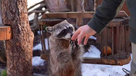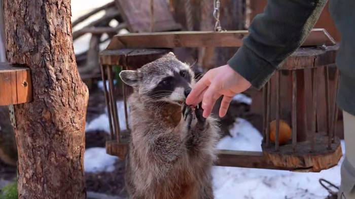 При этом во время зимнего сна еноты сохраняют способность просыпаться. В солнечные дни они могут выйти из домика и прогуляться по вольеру. Однако после легкого обеда еноты снова погружаются в сон.