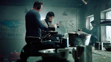 Для съемок на площадке построили макет казармы для альпинистов с полуразрушенными стенами и выбитыми окнами. Антураж дополнил залетающий через щели искусственный снег. Перед командой виртуального продакшена стояла своя непростая задача: пейзаж за окном казармы должен был обладать фотореалистичностью, которая не позволяет предположить, что съемки проходят в павильоне.
