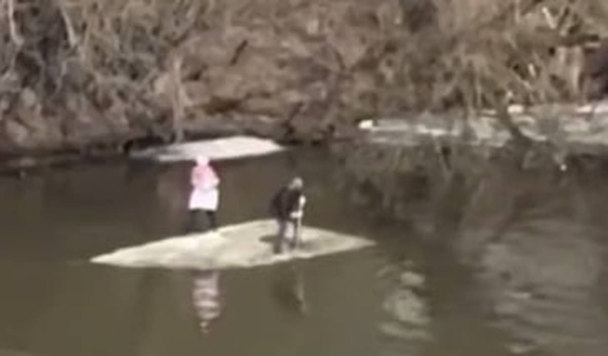 На опубликованных в Telegram-канале «Москва с огоньком» кадрах видно, как двое парней на льдине гребут предметами, визуально схожими с палками.