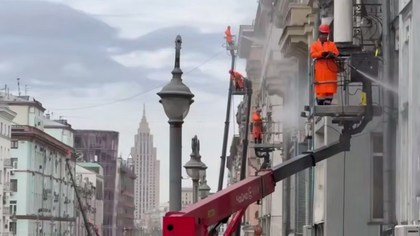 Очистка фасадов домов на Тверской и 1-ой Тверской-Ямской улицах / Видео: Telegram / Городское хозяйство Москвы