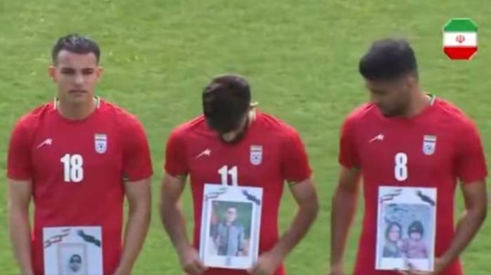 Иранские футболисты вышли на поле с фотографиями детей, погибших при ударе по школе