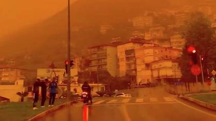 Мощная песчаная буря, пришедшая из Северной Африки, окрасила небо над Антальей в тревожные оранжево-красные тона. Мелкие частицы пыли и песка, поднятые ветрами в ливийских пустынях, преодолели акваторию Средиземного моря и достигли южного побережья Турции.
