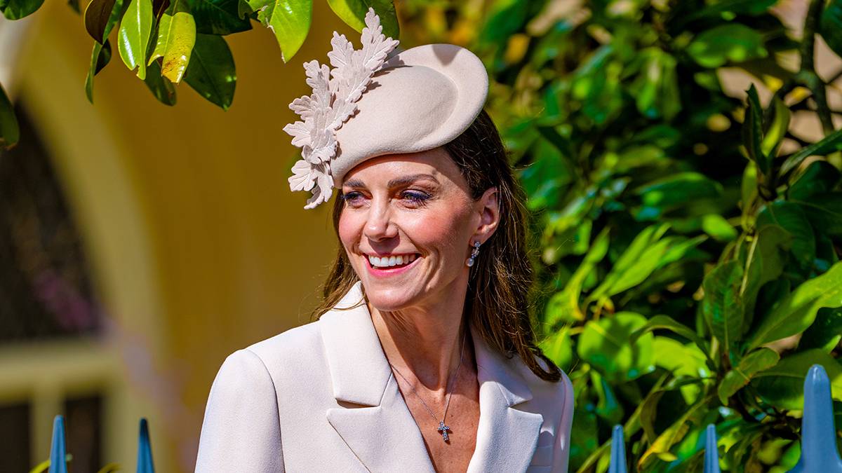 Фотографы запечатлели Кейт Миддлтон с принцем Уильямом и детьми, которые направлялись в часовню Святого Георгия. Принцесса Уэльская появилась на публике в бежевом жакете, платье-миди, шляпе и коричневых туфлях на каблуках. Кроме того, она надела цепочку с крестом и серьги с жемчугом.