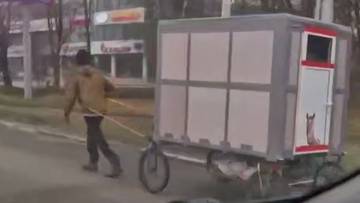 Отмечается, что 37-летний Александр изготовил повозку весом около 300 килограмм в мастерской в Рязанской области, после чего привязал ее к себе и начал путь. За необычный способ передвижения его прозвали «конем».