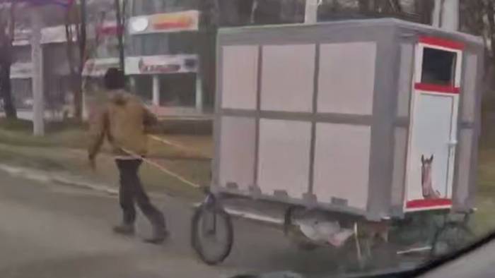 Житель Ставрополя отправился в пешее путешествие в Бразилию с самодельной повозкой. Об этом сообщает Mash.