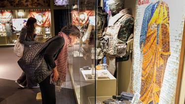 Также они смогут ознакомиться с временными экспозициями «Красота спасает мир», «Линии жизни и войны», «Золотые звезды» и многими другими, побывать в мультимедийном зале «Лица Победы» и Зале Славы, на куполе которого каждый час демонстрируется уникальная светозвуковая инсталляция о ключевых этапах Великой Отечественной войны.