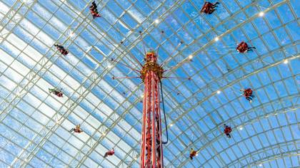 На аттракционах парка можно стать ближе к космосу. Так, «Красная башня» позволяет испытать чувство невесомости под стеклянным куполом на высоте 10-этажного дома; «Летная школа» вызывает ощущение самостоятельного управления полетом на высоте 22 метров; «Мельница» состоит из головокружительных переворотов и скоростных вращений по непредсказуемой траектории; «Молот судьбы» дарит высокую скорость и эффект выхода на орбиту, а «Полярный компас» представляет из себя плавные вращения, имитирующие полет.
