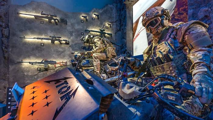 Один из разделов посвящен героической работе расчетов беспилотной авиации. В секции, стилизованной под лесополосу, показано применение FPV-дронов — техники, управляемой от первого лица. Российские операторы БПЛА демонстрируют чудеса храбрости и тактической грамотности: именно эти бойцы обеспечивают точные разведданные, корректируют огонь артиллерии и напрямую поражают противника.