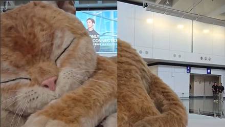 Гигантский мурлыкающий кот появился в аэропорту Гонконга
