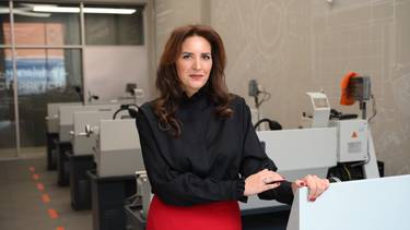 Заместитель гендиректора по персоналу и соцвопросам Московского машиностроительного завода Ольга Диброва около токарных станков в центре «Профессии будущего», где обучаются их будущие сотрудники / Фото: Пелагия Замятина / Вечерняя Москва