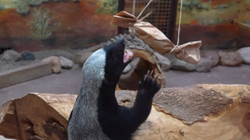 Медоед Нео из Московского зоопарка решил две головоломки со спрятанным мясом