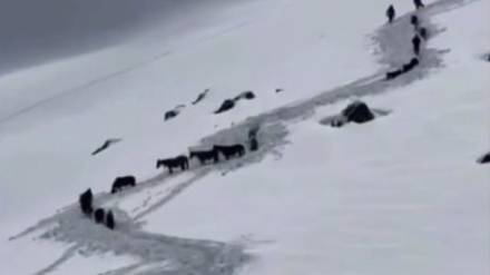 Инцидент произошел в Чародинском районе региона. На опубликованных кадрах видно, как из-за аномальных осадков животные оказались в снежном плену, а местные пытаются эвакуировать их с гор.