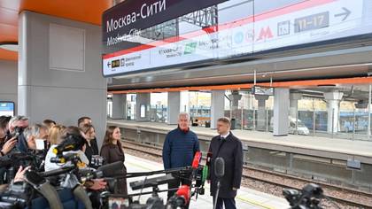 Собянин и Белозеров открыли новый городской вокзал Москва-Сити МЦД-1