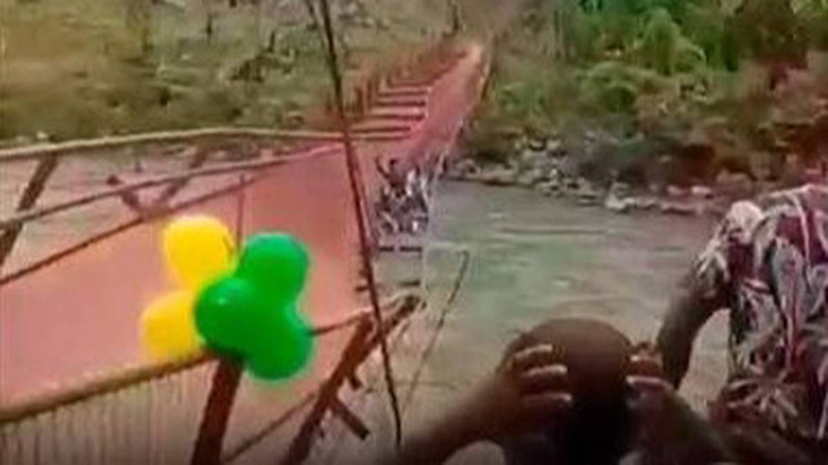 Новый мост длиной 85 метров в муниципалитете Багадо в Колумбии обрушился в реку во время торжественной церемонии открытия. Инцидент произошел, когда мэр Маринела Паломеке Серна и местные жители вышли на переправу, которая должна был соединить центр города с поселком Сан-Марино.