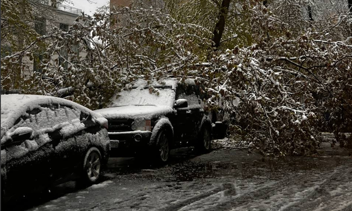 Около 200 деревьев упали в Московском регионе из-за снегопада 27 апреля