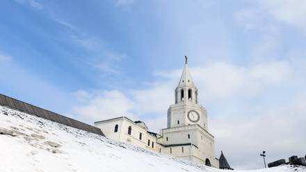 Стрелка часов на Спасской башне в Казани оказалась сорвана с вала циферблата из-за порыва ветра. Об этом в среду, 29 апреля, сообщили в пресс-службе музея-заповедника «Казанский кремль»