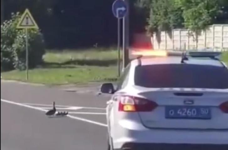 Полиция в Подмосковье остановила дорожное движение ради утки с птенцами