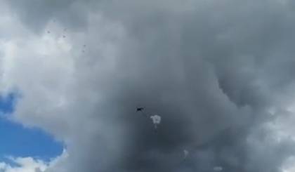 На кадрах заметно, как во время десантирования у техники не раскрылись парашюты. В результате машины разбились при падении на землю.