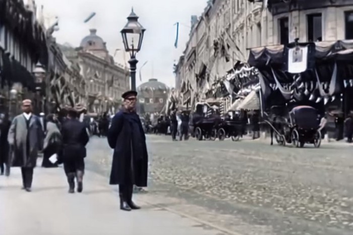 В Сети появилось раскрашенное видео съемки конца XIX века на Тверской улице города Москвы. Видеозапись доступна на YouTube-канале Denis Shiryaev.