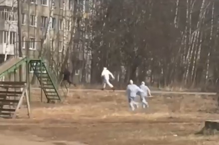 Ситуация с коронавирусомВ социальных сетях распространяется видео, снятое в Нижегородской области, в городе Арзамас. По данным паблика «База», врачи-инфекционисты пытались поймать мужчину, у которого была диагностирована коронавирусная инфекция. На кадрах видно, как три человека в масках и специальных костюмах бегут за мужчиной по детской площадке.
