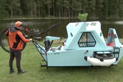 — Идея была такой. Так я могу передвигаться по суше на велосипеде, но не могу пересекать водоемы. К тому же я немного устал от своей палатки: она была очень тонкой, в ней не чувствуешь себя, как в помещении. Я подумал: почему бы не сделать что-то более прочное? Это еще один аспект, — объяснил изобретатель, его комментарий опубликован на сайте ruptly.tv.
