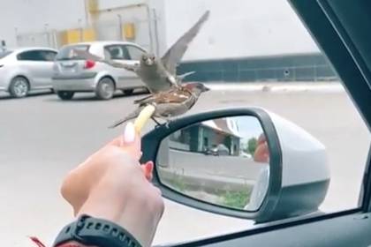 В Сети набирает популярность видео с ловким и наглым воробьем, который увидел лакомство и оттеснил сородича, сидящего на боковом зеркале автомобиля. Автор ролика решила покормить воробья и рассмеялась, увидев, как другая птица смело избавилась от соперника.